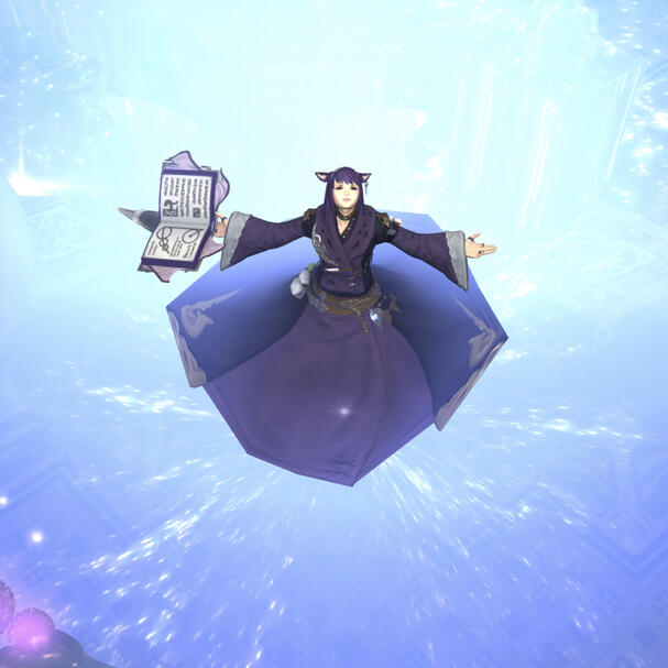 S'une is a violet haired Miqo'te with a kind heart and a passion for helping others. Enjoying her own set of fashion, she wears robes that few others have been seen to use. She is never ostentatious and tends to favor simpler outfits and minimal jewelry.Her personality is charitable with a special fondness for helping children when she can. A good listener, she offers her advice to anybody willing to listen though her advice is not always the best. Still, she has an uncanny way of saying just the right thing or offering gentle nudges towards solutions for people involved with problems.